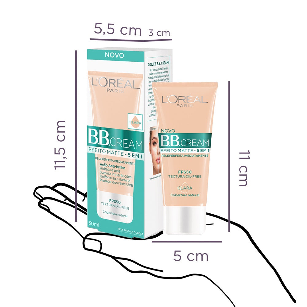 O BB Cream Efeito Matte de L’Oréal Paris foi desenvolvido especialmente para peles mistas a oleosas, garantindo controle do brilho e da oleosidade enquanto hidrata e suaviza as imperfeições da pele. Com alta proteção UV FPS 50, oferece ação antibrilho para uma performance que dura o dia todo.