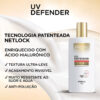 Desenvolvido com a tecnologia patenteada NETLOCK, o UV Defender forma um filme ultrafino, homogêneo e invisível sobre a pele, garantindo proteção eficaz sem obstruir os poros e sem deixar resíduos esbranquiçados.