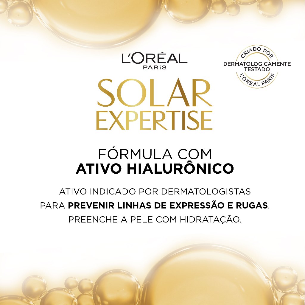 O L’Oréal Paris Solar Expertise Antirrugas FPS 30 é um protetor solar facial de uso diário, indicado para todos os tipos de pele. Com filtros solares de alta eficácia, protege a pele contra os raios UVA e UVB, ajudando a prevenir os principais sinais do envelhecimento precoce causados pela exposição solar, como rugas, manchas e linhas finas.
